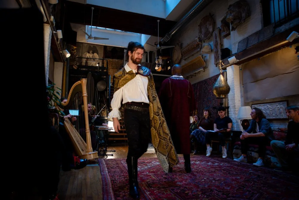We are an ensemble of actors and musicians which creates dynamic, fully realized productions of Shakespeare’s plays. Our unique interplay of acting, live music & sound textures inform every aspect of our performances, from the story, to character development, to the rich imagery and poetry of the text. We perform in theaters, clubs, public spaces and private homes without a fourth wall — our audiences are drawn into the world of the plays in an intimate, powerful and direct shared experience.